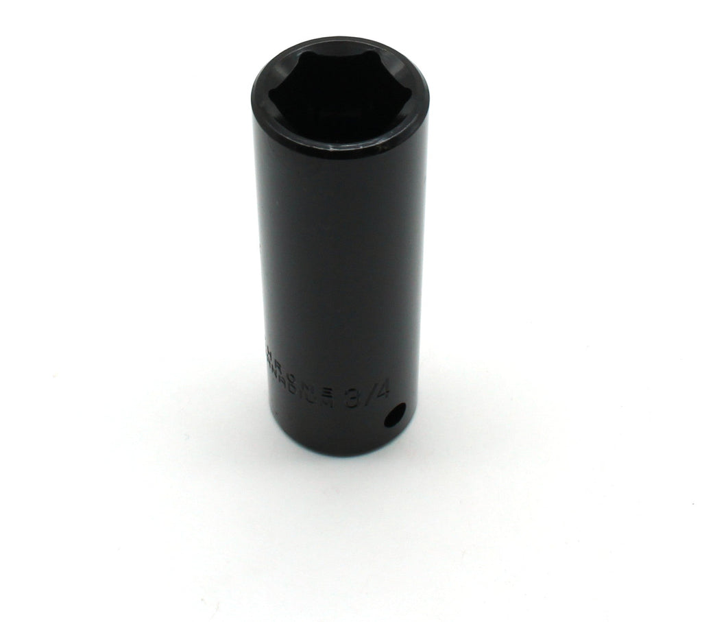 3/4" Inch Impact Socket Made of chrome vanadium with protective finish for heavy duty impact use Deep socket, each is 3" long 1/2" Inch drive Newly available as individual pc from our 3/8 Inch to 1-1/4 Inch socket set US-BASED CUSTOMER SERVICE: Available by chat, email, phone, or visit us at our customer service center in La Crosse, WI.