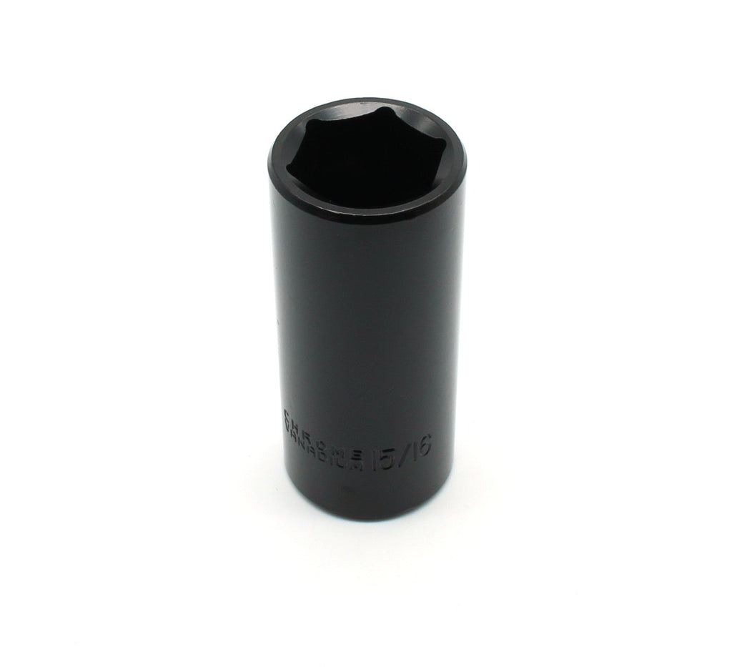 15/16" Inch Impact Socket Made of chrome vanadium with protective finish for heavy duty impact use Deep socket, each is 3" long 1/2" Inch drive Newly available as individual pc from our 3/8 Inch to 1-1/4 Inch socket set US-BASED CUSTOMER SERVICE: Available by chat, email, phone, or visit us at our customer service center in La Crosse, WI.