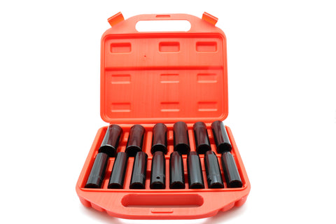 1/2-Inch Drive Deep Impact Socket Set, Metric, Cr-V, 6-Point, 10 mm - 24 mm, 14 Sockets Sizes: 10, 11, 12, 13, 14, 15, 16, 17, 18, 19, 20, 21, 22, and 24 mm Made of chrome vanadium with protective finish for heavy duty impact use Each socket is 3" long Comes in a heavy duty moulded carrying case with handle US-BASED CUSTOMER SERVICE: Available by chat, email, phone, or visit us at our customer service center in La Crosse, WI.