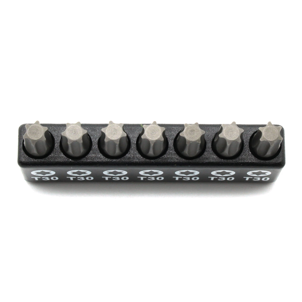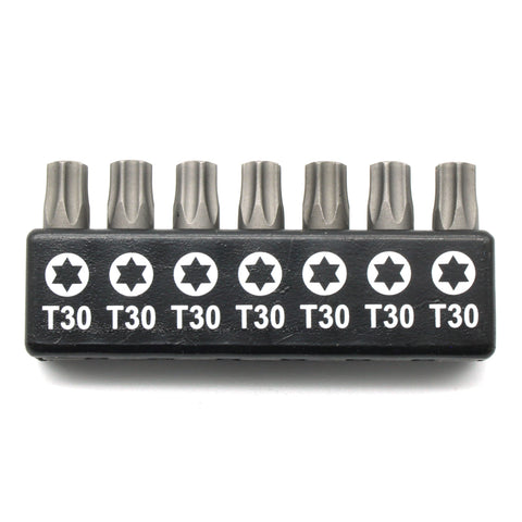 SCREWDRIVER INSERT BITS: 7 pc T30 Torx 6 Point Screwdriver Insert Bits in a plastic storage case.