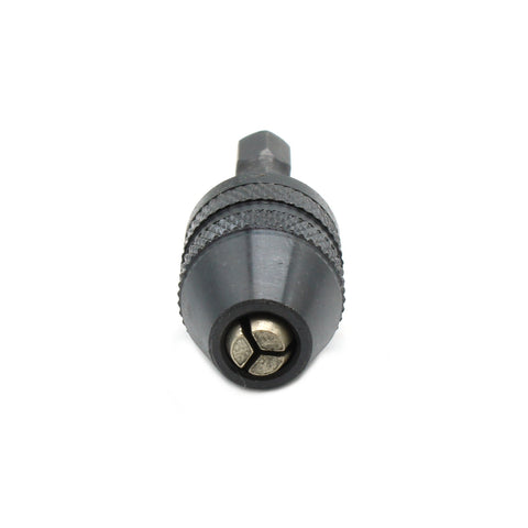 TMAX Black 1/4 Inch Hex Shank Keyless Chuck Adapter To Hold 1/64" to 5/32" (0.3mm to 4mm) Conventional or Microsize Drill Bit Drop forged steel Chuck Adapter for your oversized drill chuck, quickly converting it for precise drilling with micro size bits. 1/4" (6.35mm) easy snap-in hex shank allows hex drive power tools to use conventional drill bits Easily locks onto and releases drill bits. Hold bits up to 3.5mm US-BASED CUSTOMER SERVICE: Available by chat, email, phone, or visit us at our customer service center in La Crosse, WI.