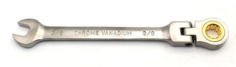 3/8 inch Flex-Head Ratcheting Combination Wrench Set, 72-Teeth, Cr-V Constructed, Nickel Plating 3/8" open end and ratcheting box end 180° Flex-Head allows for work in hard to reach places Made of chrome vanadium steel US-BASED CUSTOMER SERVICE: Available by chat, email, phone, or visit us at our customer service center in La Crosse, WI.