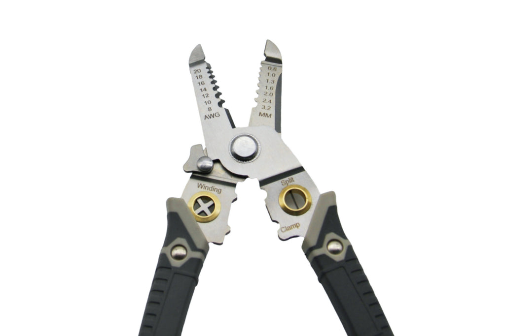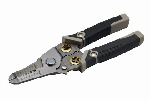 This wire stripper quickly cuts and crimps 8-20 AWG wire.