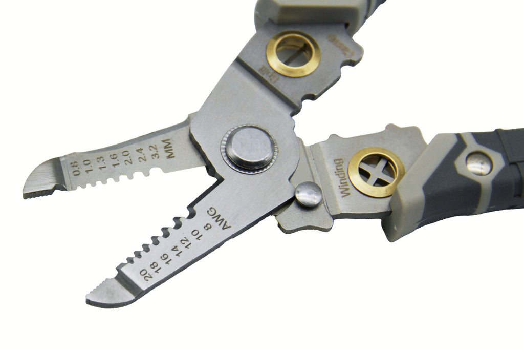 The wire stripper is precision cut and formed from 420J2 stainless steel, which is durable and rust resistant. The stainless steel material with integral heat treatment has high hardness and high strength.