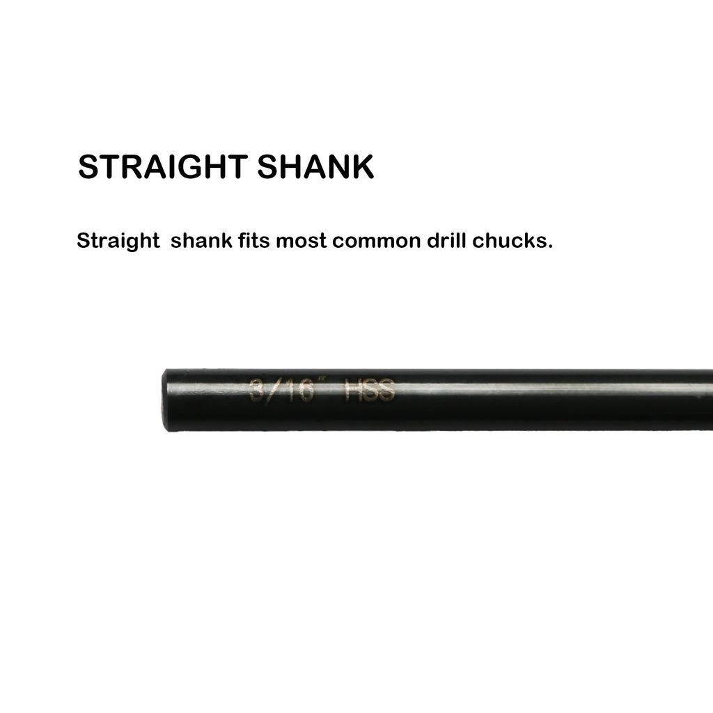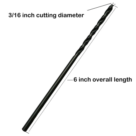 AIRCRAFT EXTENSION: 3/16 inch cutting diameter, 6 inch overall length, 135 degree split point, straight shank.