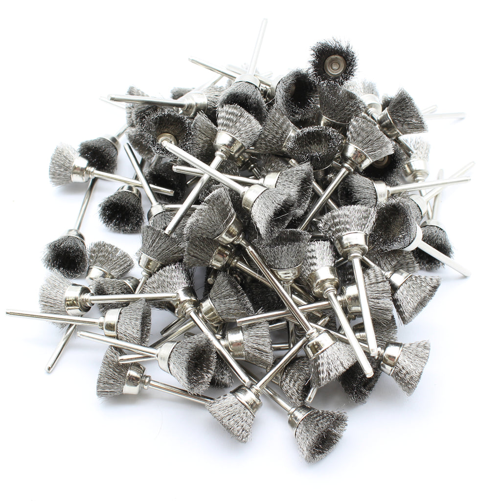 WIRE BRUSH SET: This set includes 100 pc of 1/2" Cup Wire Brushes, providing you with an ample supply for all your cleaning and polishing needs.