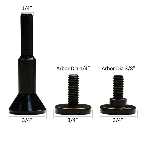 FUNCTION: This mounting mandrel is mainly designed for mounting 3/8” or 1/4” arbor holes and small diameter cutting wheels. The screw neck length fits 0.035" to 1/4" thick Type 1 cut-off wheels.