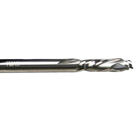 DOWNCUT SPIRAL: Spiral bits used to smoothly downcut grooves and slots, mortises, cycles, and dados. Produces a clean edge and top surface better than straight bits.