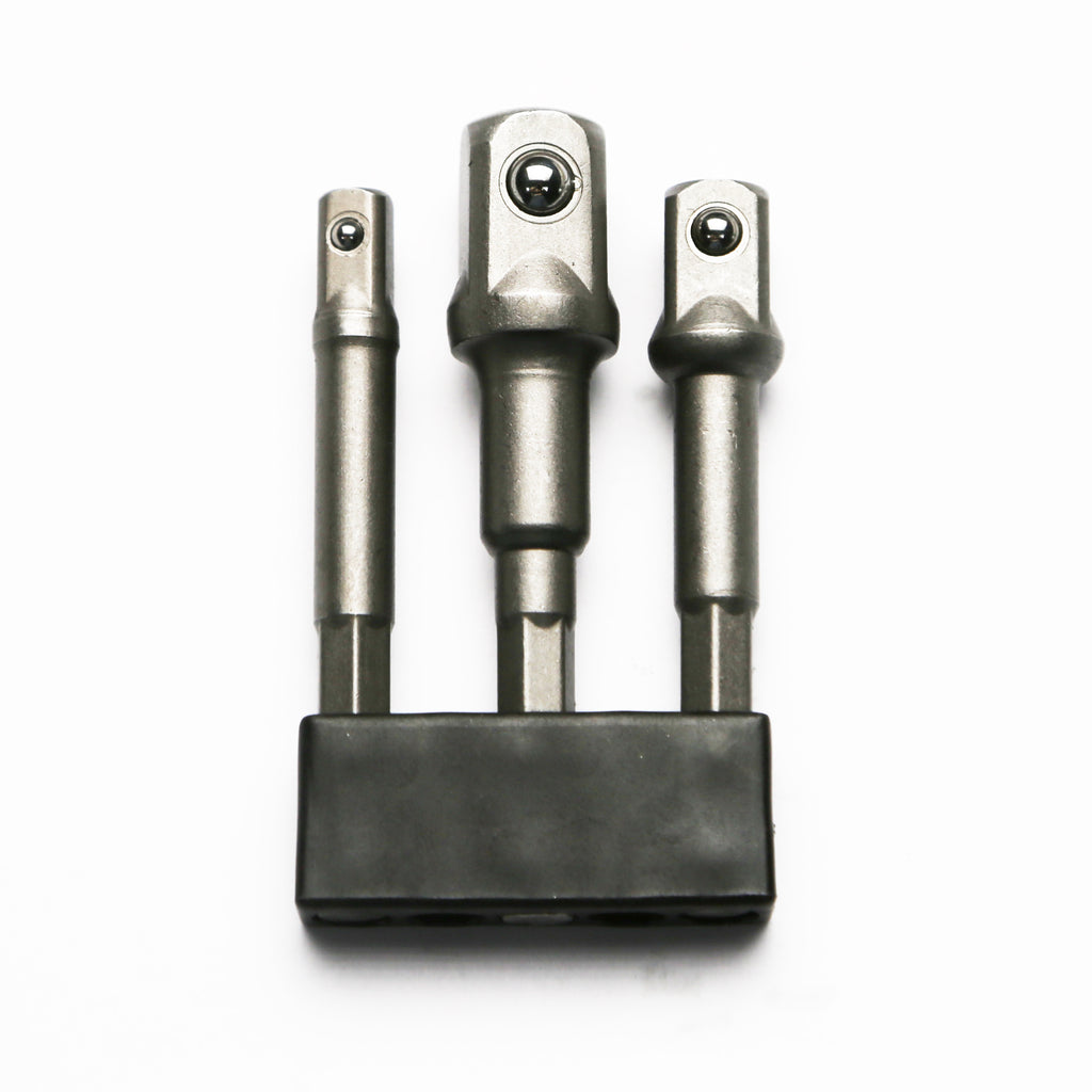 This Impact Grade Socket Adapter/Extension Set comes with three 1/4 inch hex shank, 3 inch long socket adapters so you can turn any impact drill driver into a power socket driver with the extra reach you need.