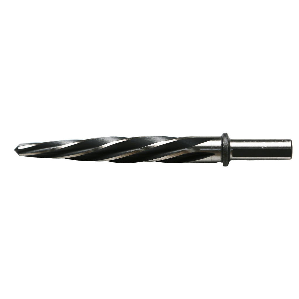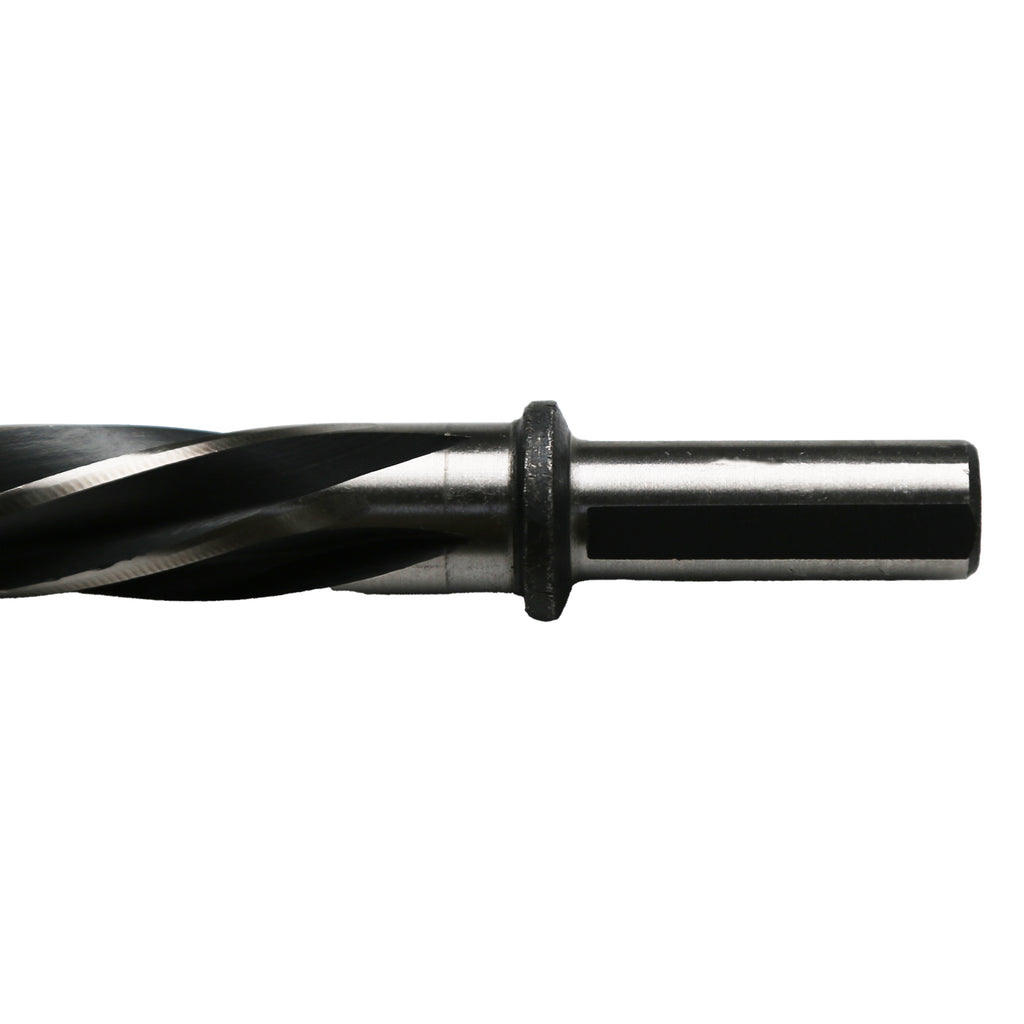 FEATURES: Designed with helical flutes and safety stops to keep chips away from the operator. The safety collar stops to avoid over-penetration and loss of operator stability.