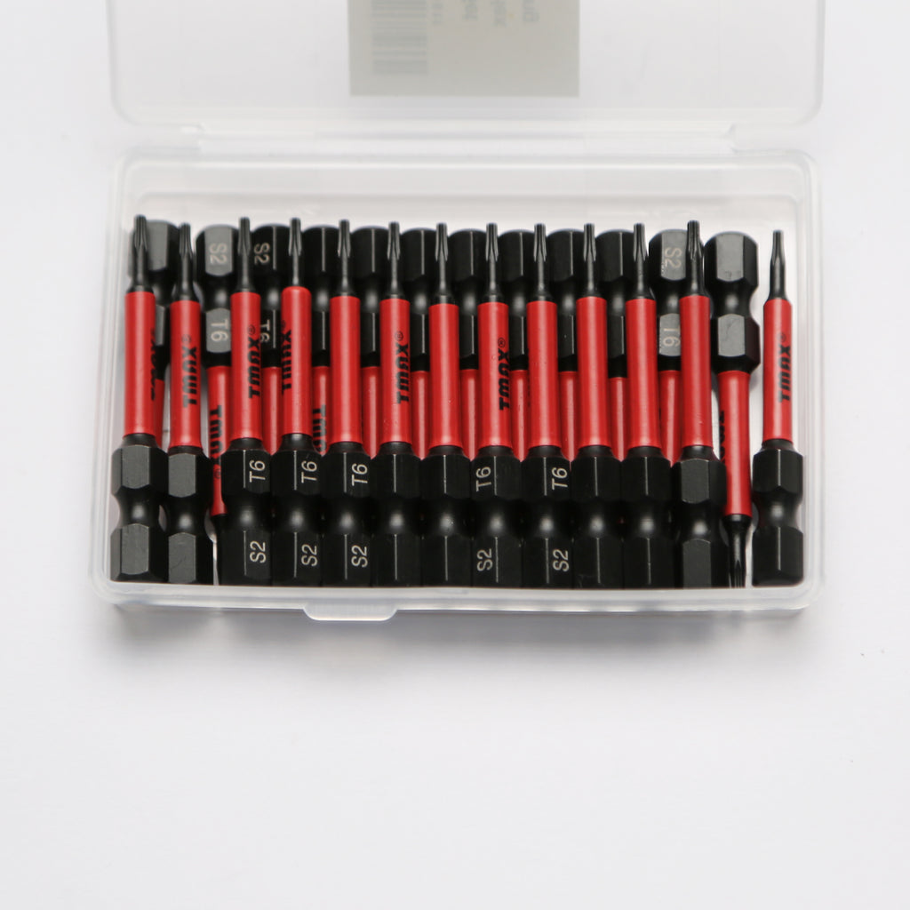 SCREWDRIVER INSERT BITS: 25 piece set of 2 inch, T6 Torx driver bits. 1/4" (6.35mm) Hex Shank fits electric screwdrivers, hand screwdrivers, electric drills, air drills. Packaged in a customized box.