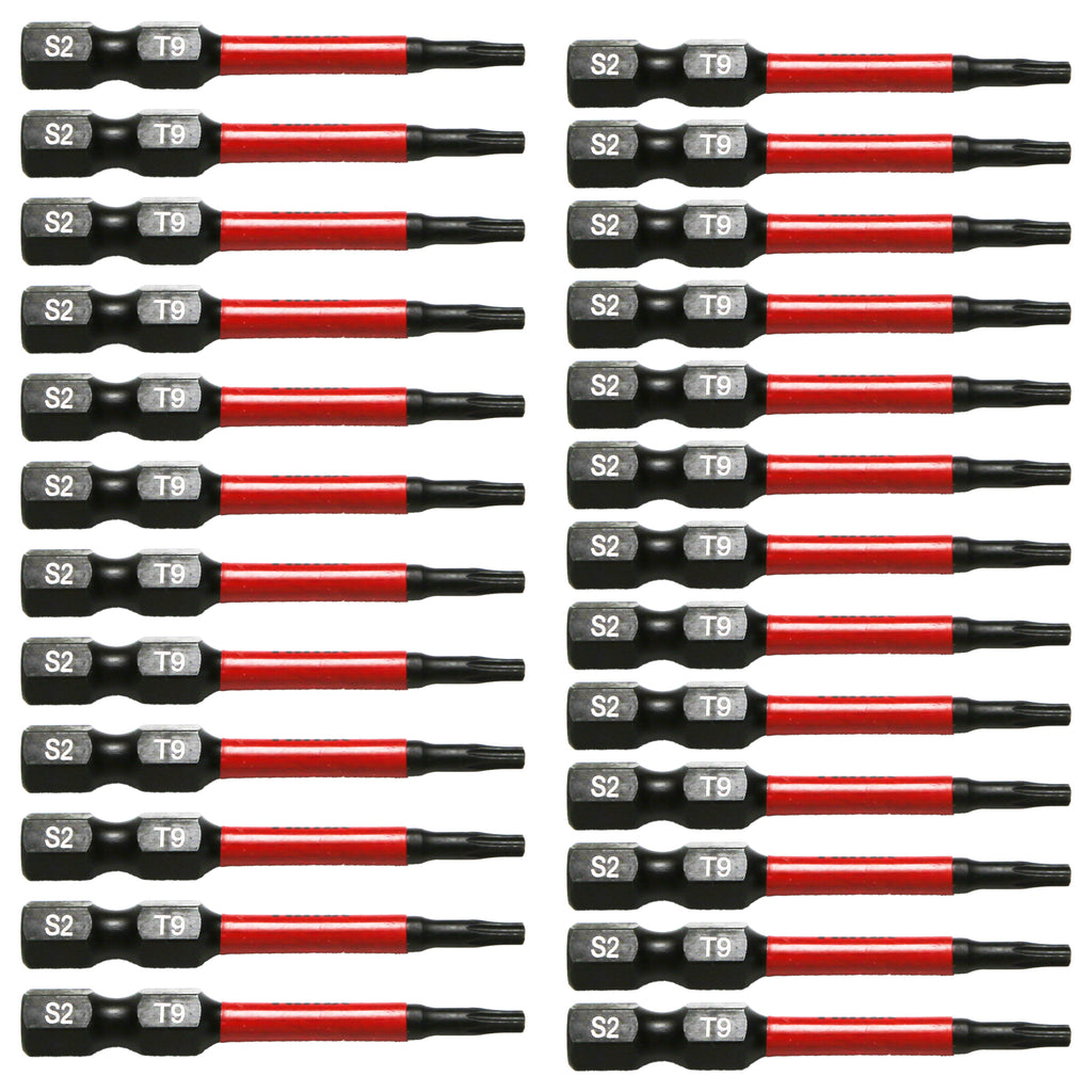 The set includes 25pc Torx T9, 2” Long Screwdriver Insert Bit with 1/4” Hex-Shank.