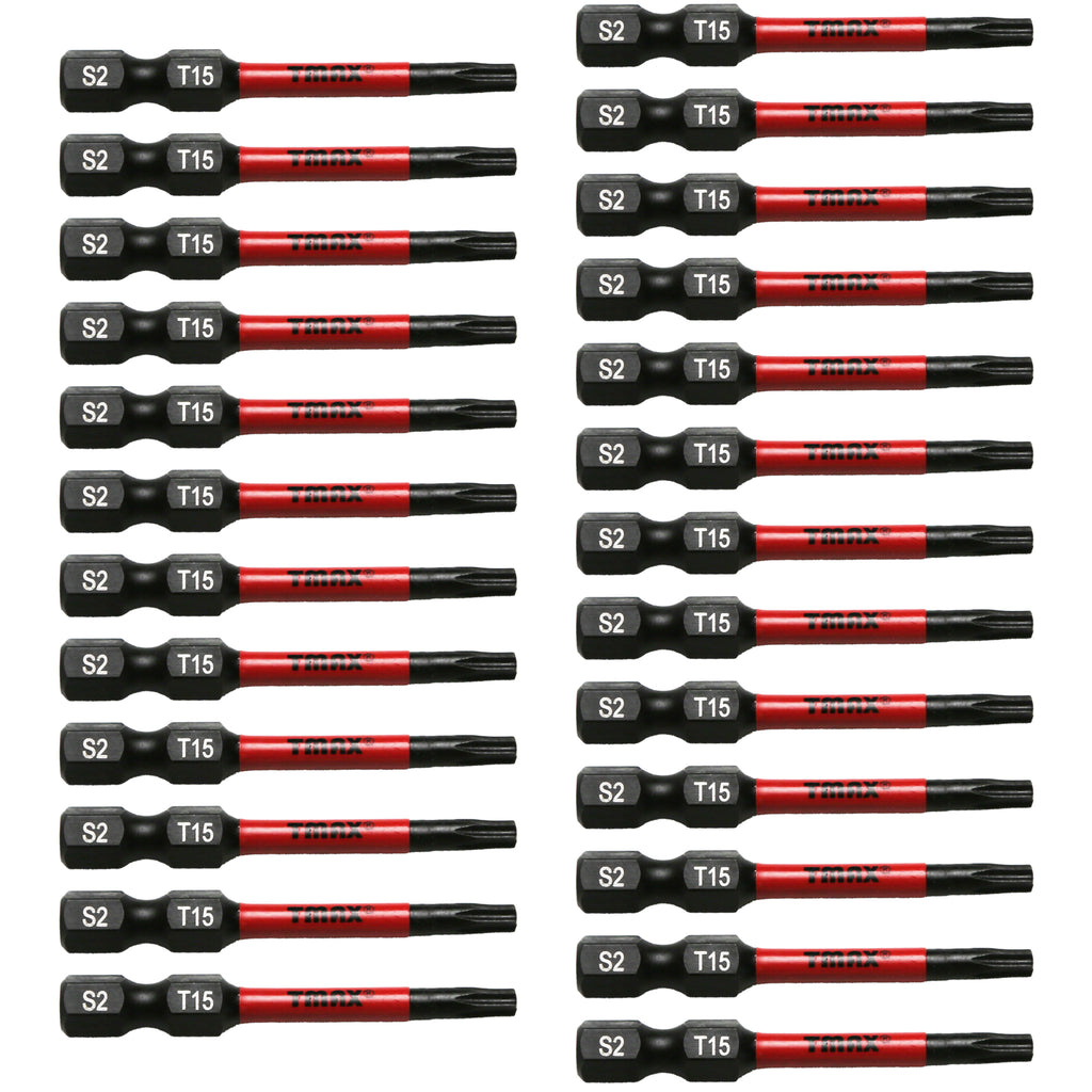 SCREWDRIVER INSERT BITS: 25 piece set of 2 inch, T15 Torx driver bits. 1/4" (6.35mm) Hex Shank fits electric screwdrivers, hand screwdrivers, electric drills, air drills. Packaged in a customized box.