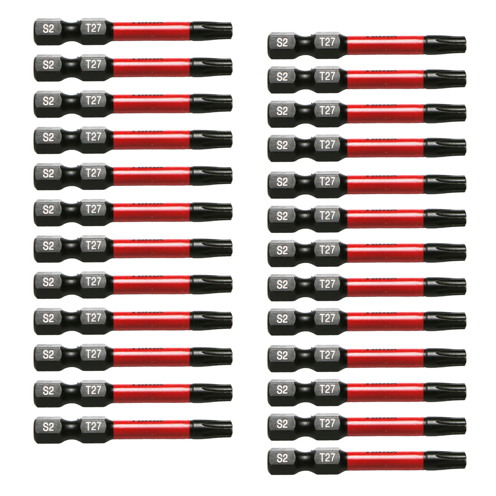 The set includes 25pc Torx T27, 2” Long Screwdriver Insert Bit with 1/4” Hex-Shank Bit with 1/4” Hex-Shank.