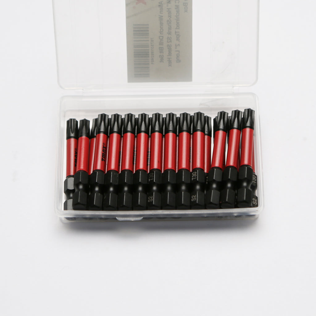 The set includes 25pc Torx T30, 2” Long Screwdriver Insert Bit with 1/4” Hex-Shank.