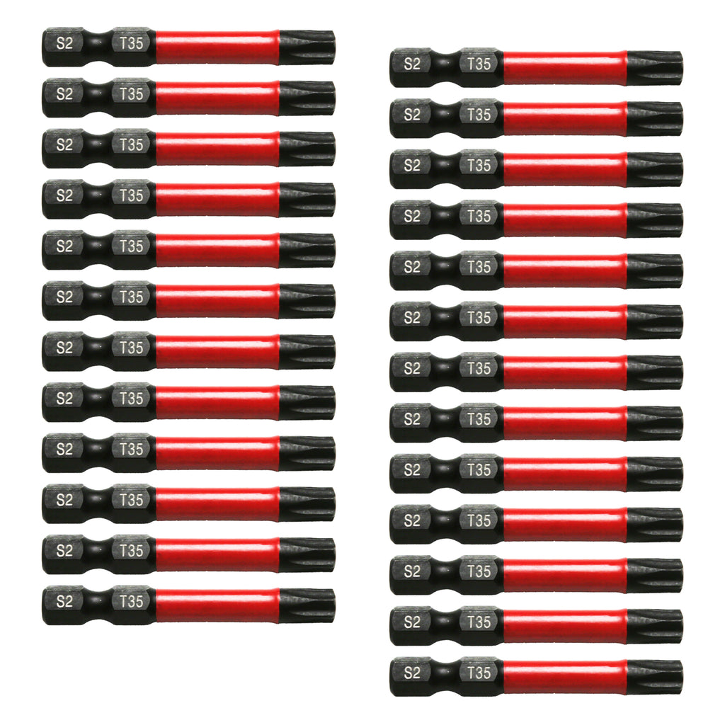The set includes 25pc Torx T35, 2” Long Screwdriver Insert Bit with 1/4” Hex-Shank.