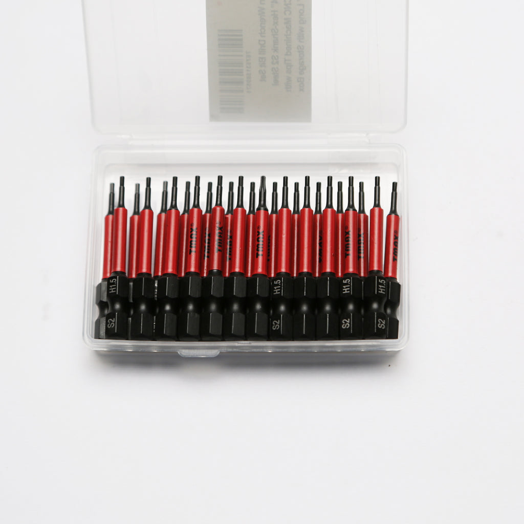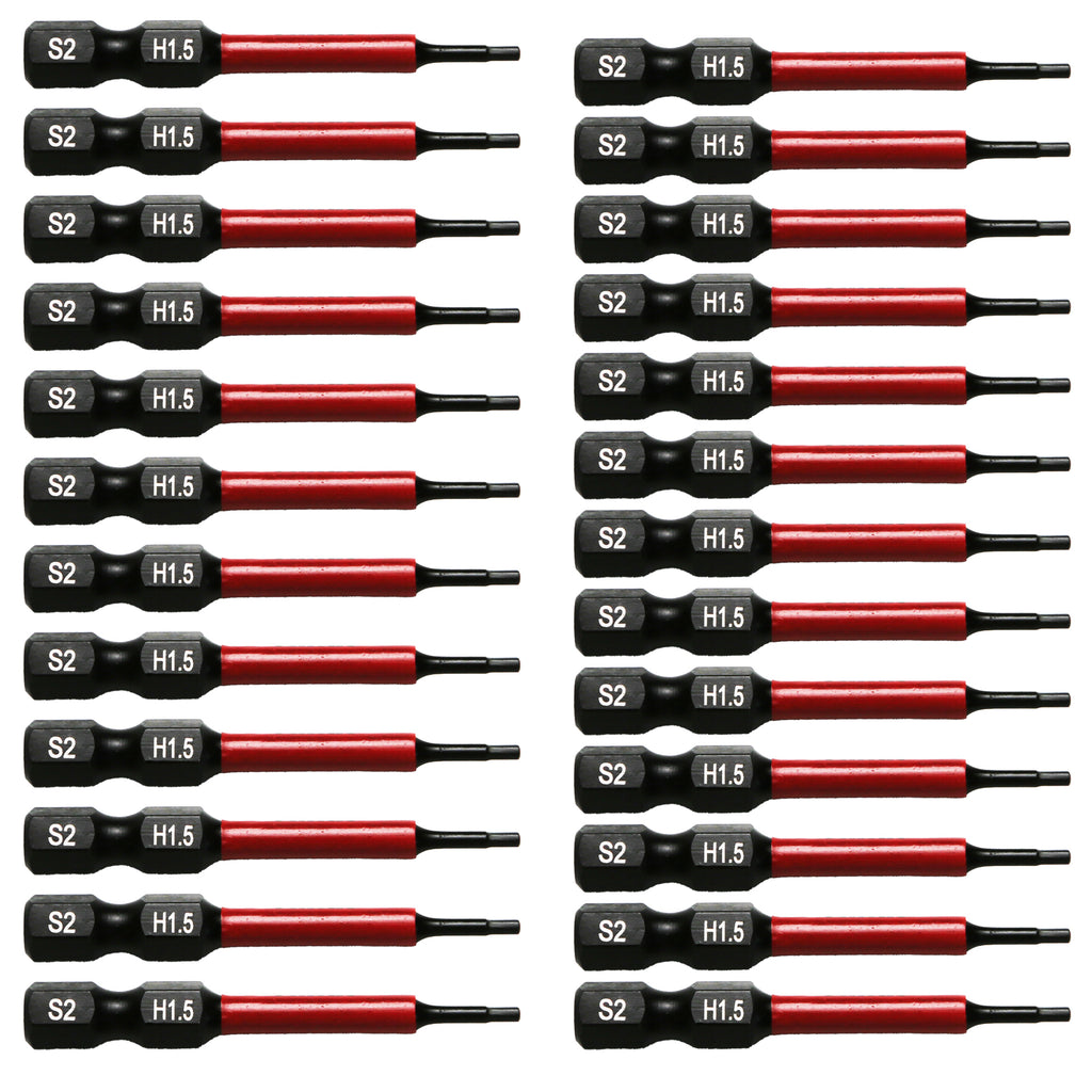 The set includes 25pc Hex Head Allen Wrench Screwdriver Insert Bit Set ,H1.5, 1/4" Hex-Shank.