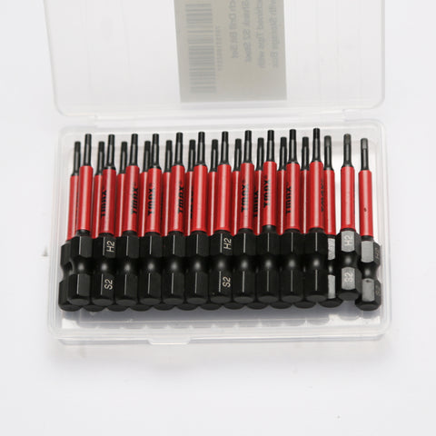 The set includes 25pc Hex Head Allen Wrench Screwdriver Insert Bit Set ,H2.0, 1/4" Hex-Shank.