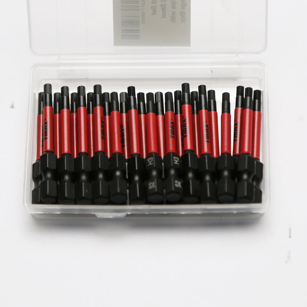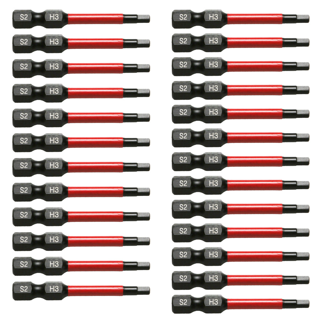 The set includes 25pc Hex Head Allen Wrench Screwdriver Insert Bit Set ,H3.0, 1/4” Hex-Shank.