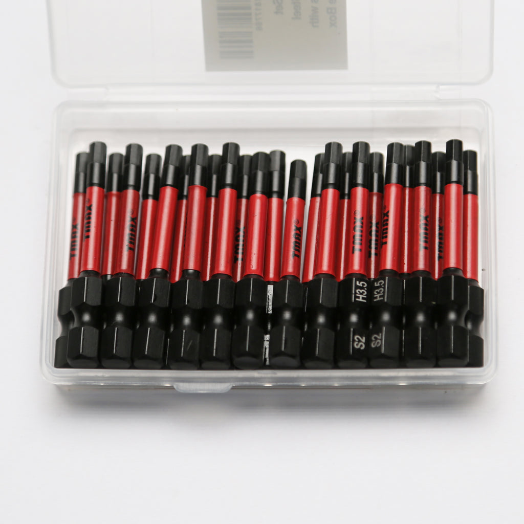 The set includes 25pc Hex Head Allen Wrench Screwdriver Insert Bit Set ,H3.5, 1/4" Hex-Shank.