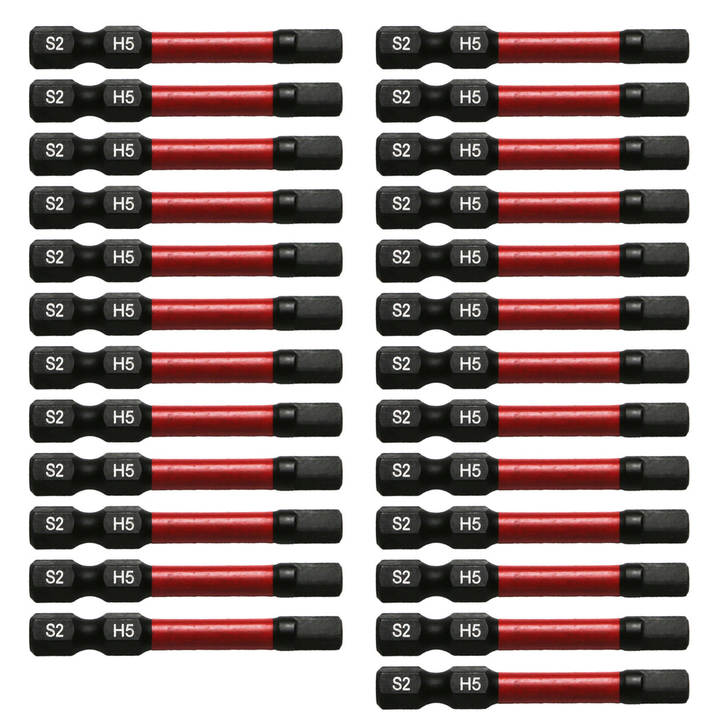 The set includes 25pc Hex Head Allen Wrench Screwdriver Insert Bit Set ,H5.0, 1/4" Hex-Shank.