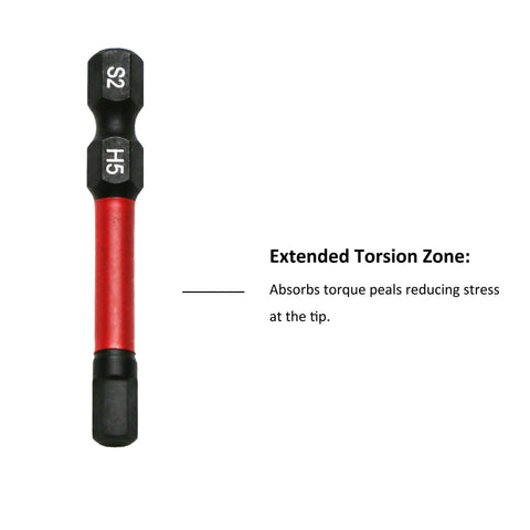 CNC machined tips, S2 alloy steel body, hardened core to increase bit strength and reduce fracture. Black phosphate process, and advanced corrosion resistance.