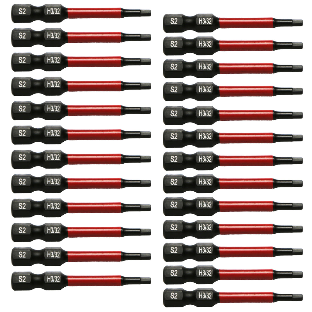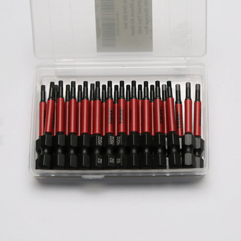 The set includes 25pc Hex Head Allen Wrench Screwdriver Insert Bit Set ,H3/32", 1/4" Hex-Shank.
