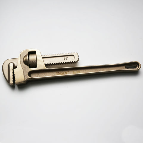 The 14 inch non sparking pipe wrench. Aluminum-Bronze is high strength, non-sparking with high hardness and toughness.