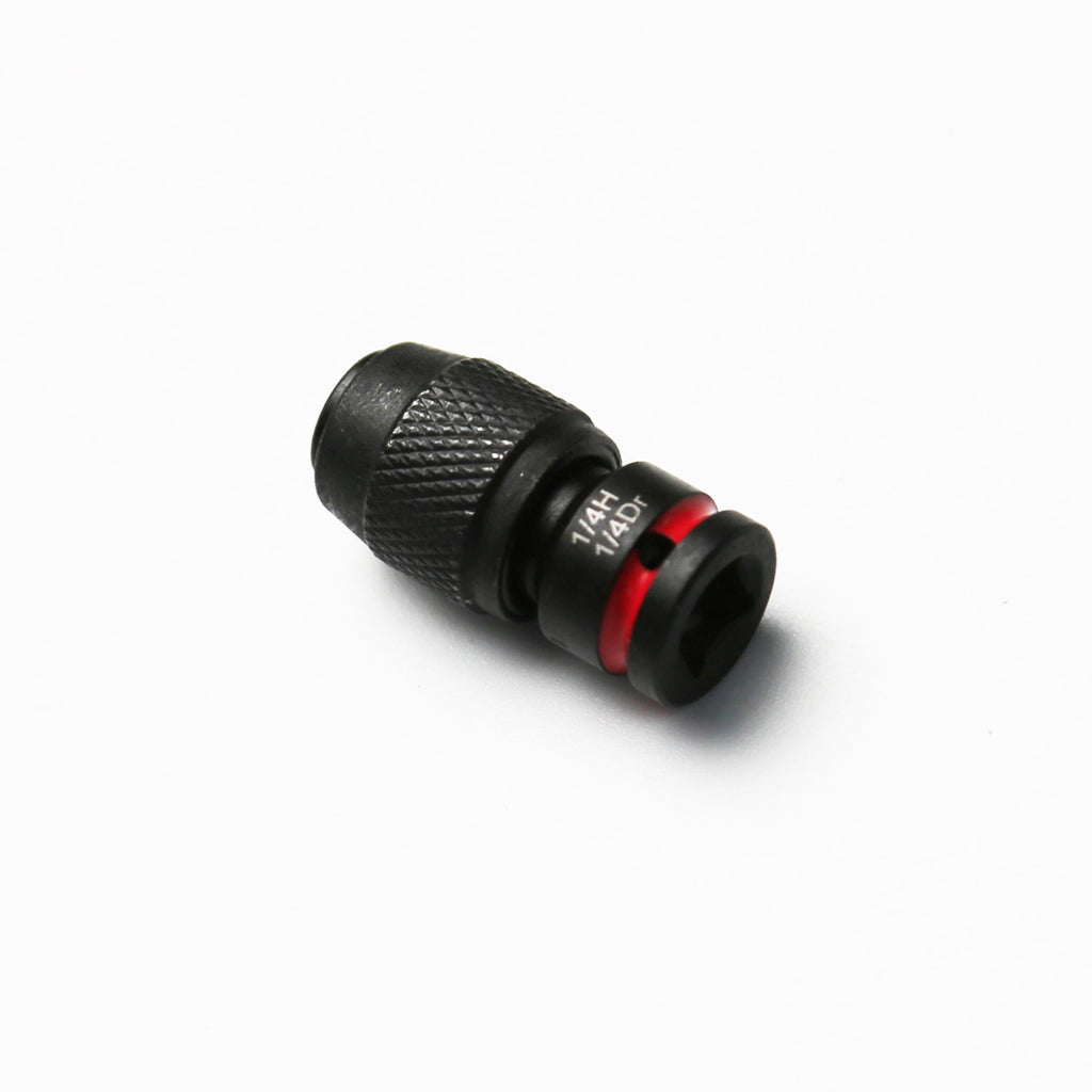 The square drive of this impact drill adapter is compatible with hand ratchets, air tools, power tools, torque wrenches, and impact wrenches for securely holding bits. It can also be used with other 1/4" drive tools for versatile conversion. The head converter is suitable for use with 1/4" hex drive bits.