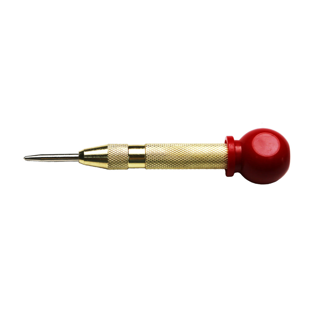 The automatic center has an adjustable spring inside and when used on different materials, the impact force can be adjusted by rotating the knurled cap to control the size of the mark on the material.