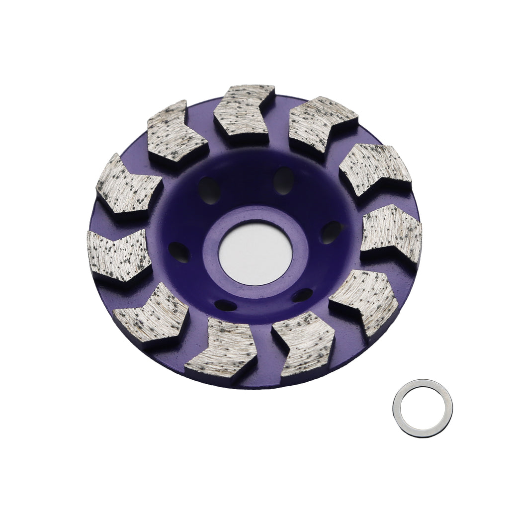 4" diamond grinding wheel for concrete or masonry, 11 turbine segments, greater than #60 grit, three times the grinding strength of the regular model.