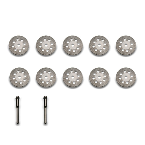 TMAX 10 pc 7/8" Breath Diamond Coated Cut Off Wheel Saw Disc with 2 Mandrel 1/8" Shank for Dremel
